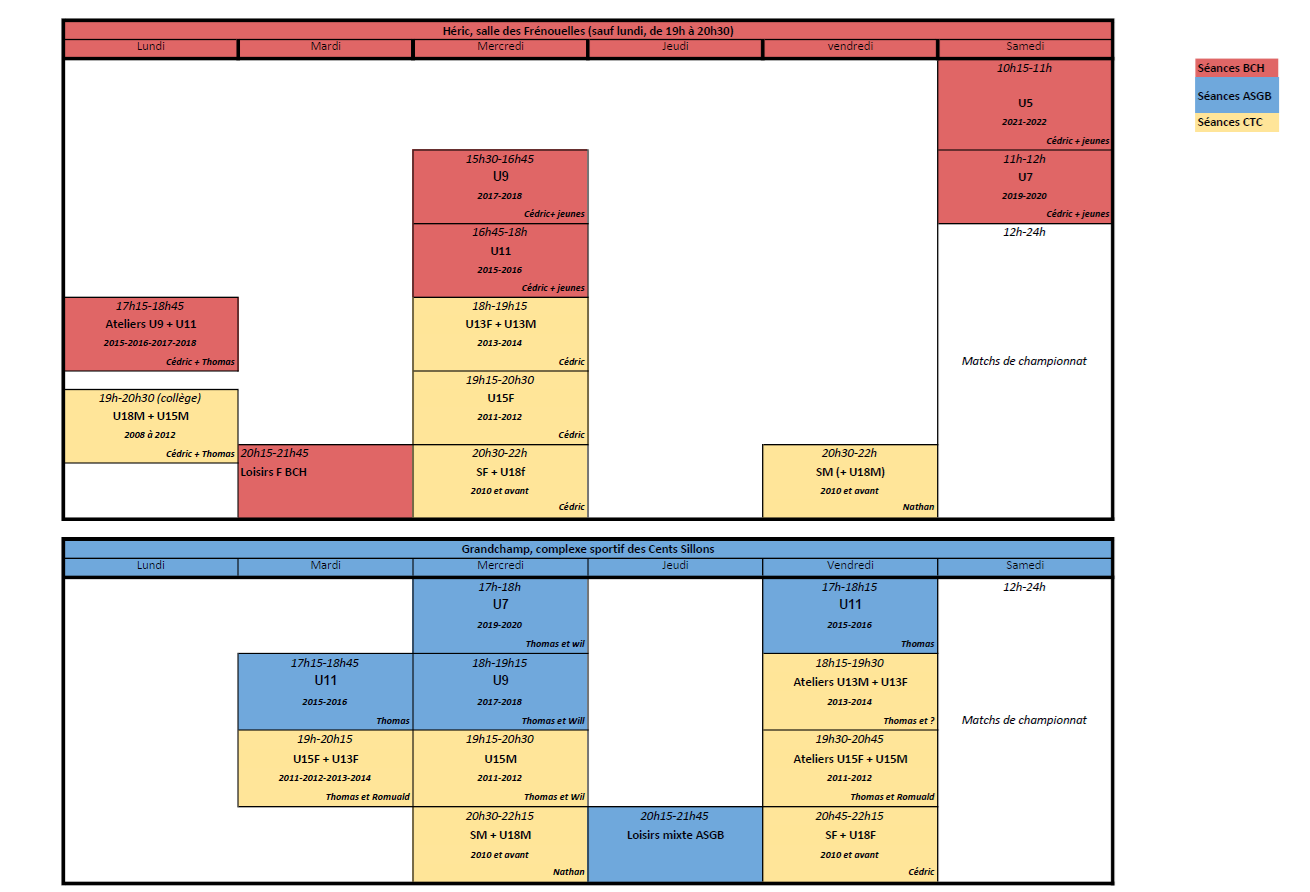 ATTENTION NOUVEAU PLANNING D'ENTRAINEMENT